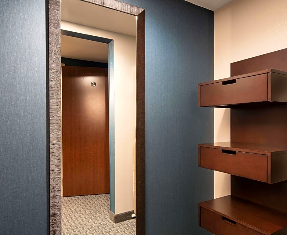 This mobility accessible standard room features one king-sized bed, and a roll-in shower. This room offers the latest in technology and ergonomic comfort to our guests. Roll-in shower with attached accessible seating, lowered vanity in bathroom, and lowered shelf in closet. And the pursuit of the perfect night's stay continues with an evolution of innovative new amenities including the bed, chair, television and crisp white duvet. The ergonomic Mirra chair by Herman Miller is good for your back and better for work. Enjoy an in-room movie or your favorite television show on our 36-inch HDTV. There's also a microwave, refrigerator and coffee/tea maker to help you feel at home. And for conducting business, our rooms ensure your productivity thanks to the spacious work desk, two telephones with dataport and voicemail and complimentary WiFi access. Any corresponding photo may not reflect the specific accessible room type or room feature.